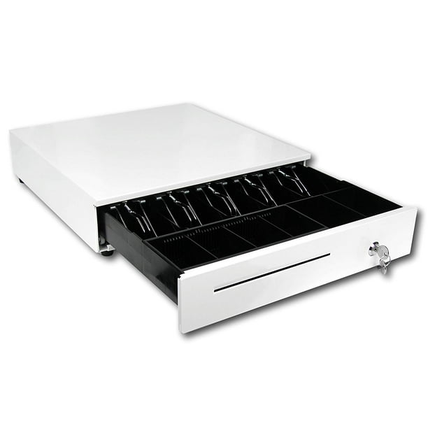 Cash Register Drawer For Point Of Sale Pos System With Removable Coin Tray 5 Bill 6 Coin 24v Rj11 Rj12 Key Lock Media Slot White Walmart Com